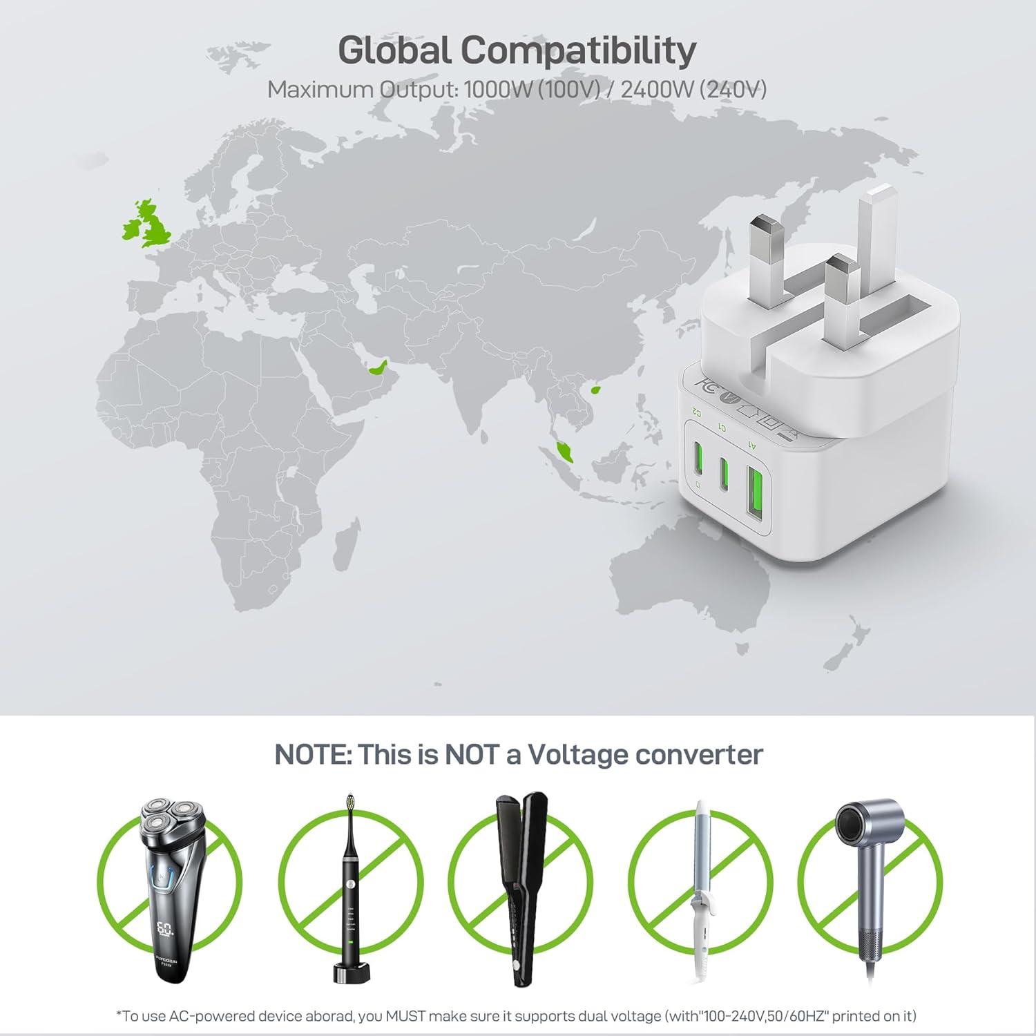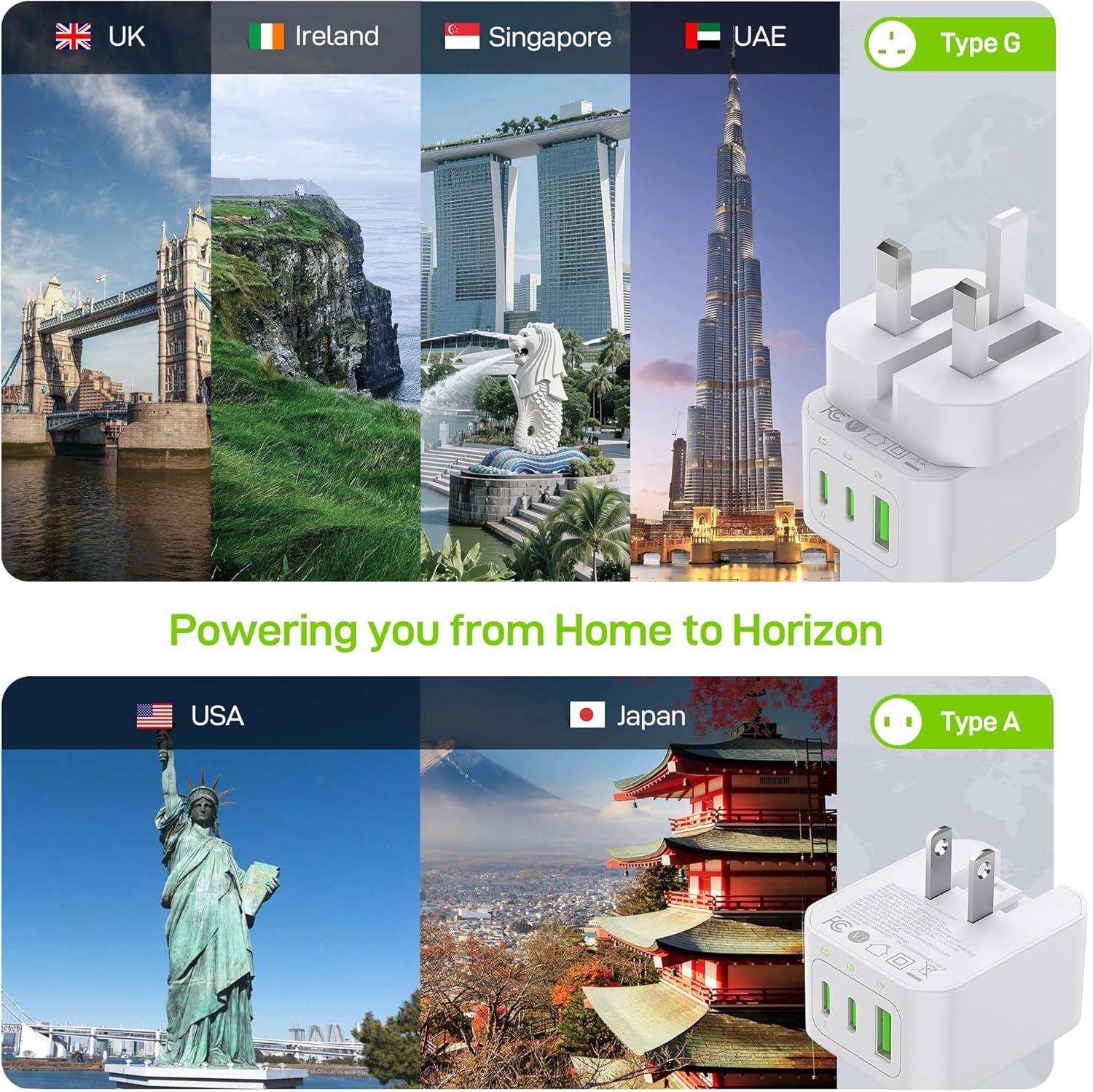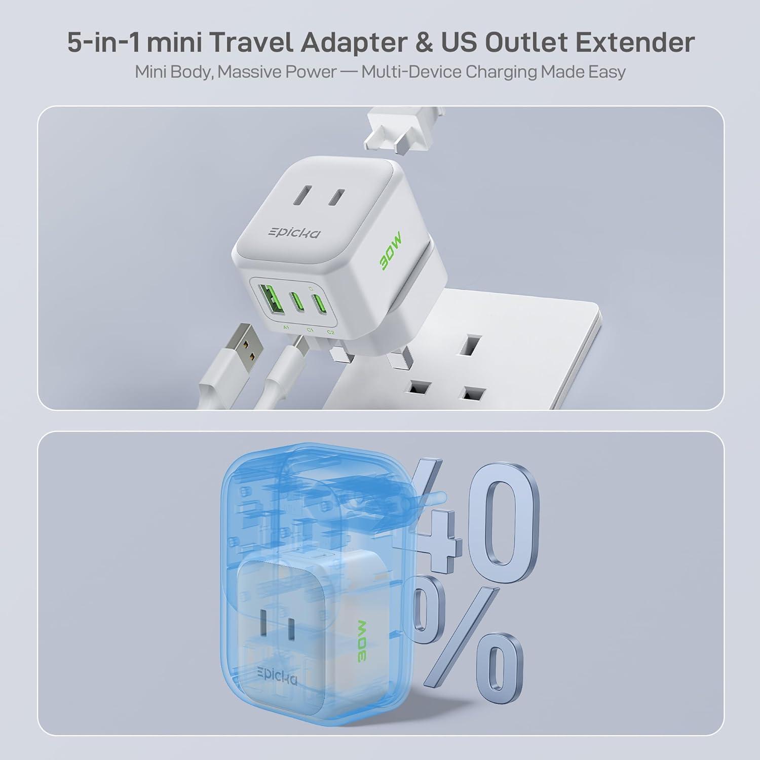 EPICKA Hybrid Mini European Travel Plug Adapter, 30W PD Fast Charging 5-in-1 Foldable International Power Adapter with 2 AC & 3 USB Ports, with Type C VisaPlug, Travel Essentials for US to Europe(Type G-for England)