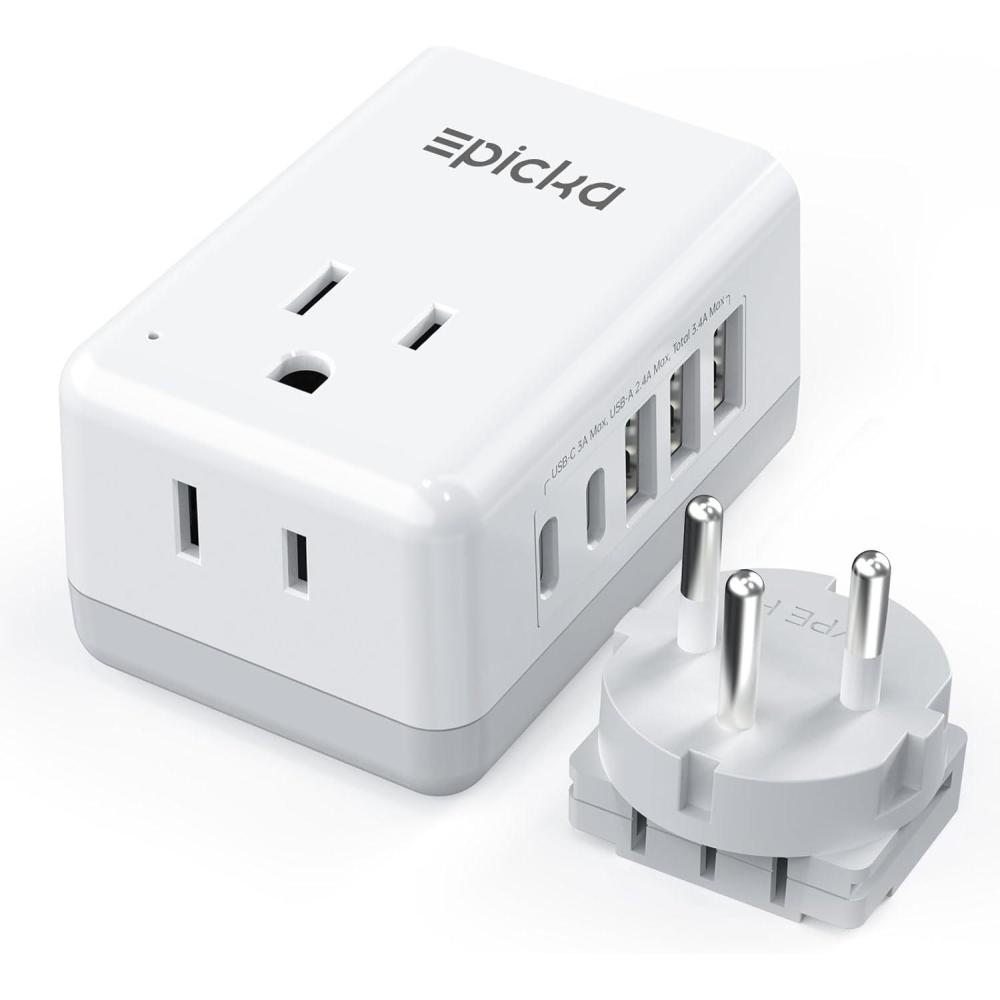 EPICKA US to Italy Travel Adapter, Universal Plug Adapter with 2 US Outlets, 3 USB-A & 2 USB-C Ports, Ultra Compact Swap&Adapt Type L Plug Attachment, Grounded Adapter for Chile, Cuba & Syria (X232L)(Type H-Israel)